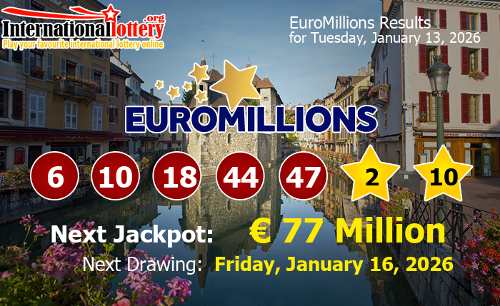 EuroMillions Lottery produces Europe’s most impressive lotto jackpots and boasts great winning odds beginning at 1:23 for a secondary prize! Enter five regular numbers and your choice of two Lucky Stars now for a chance to win one of the lottery’s biweekly draws which are held every Tuesday and Friday evening.