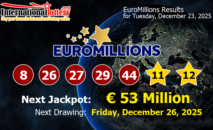The next EuroMillions drawing will be on Friday, December 26, 2025. The jackpot jumps to €53 million. Would you like to try your luck?