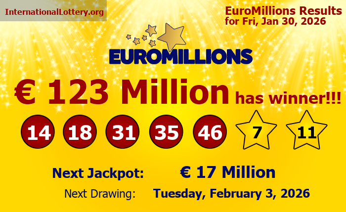 These are the prize payouts for all countries that play EuroMillions combined, along with the prize values for each prize tier on Fri, Jan 30, 2026: