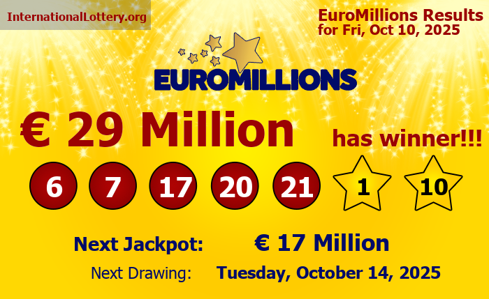 Friday’s winning numbers were: 6, 7, 17, 20, 21. The two lucky stars for the draw: 1 and 10.
