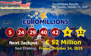 In this drawing, there are two players who won €177,507.97 with all 5 matching regular numbers and 1 star. They bought the lucky tickets in UK and Portugal. Besides, there are three players who got €27,658.00 third prizes (UK, Ireland, Portugal), and many prizes as the information in the table below.Players can win this game by selecting five numbers from the range of 1-50 and 2 additional numbers, called ‘Lucky Stars’, from the range of 1-11. Those interested in learning more about the rules of other popular lotteries should visit our online lottery informational pages.